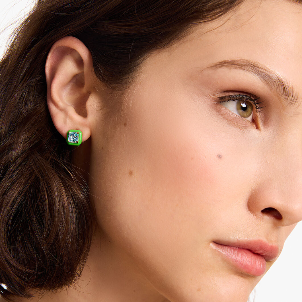 The Brighten Up Studs in Green & Light Blue by kate spade new york are an elevated everyday essential that add a beautiful pop of color. These earrings are made of high polish, 18k gold plating and feature a colorful stud set in an enamal border.