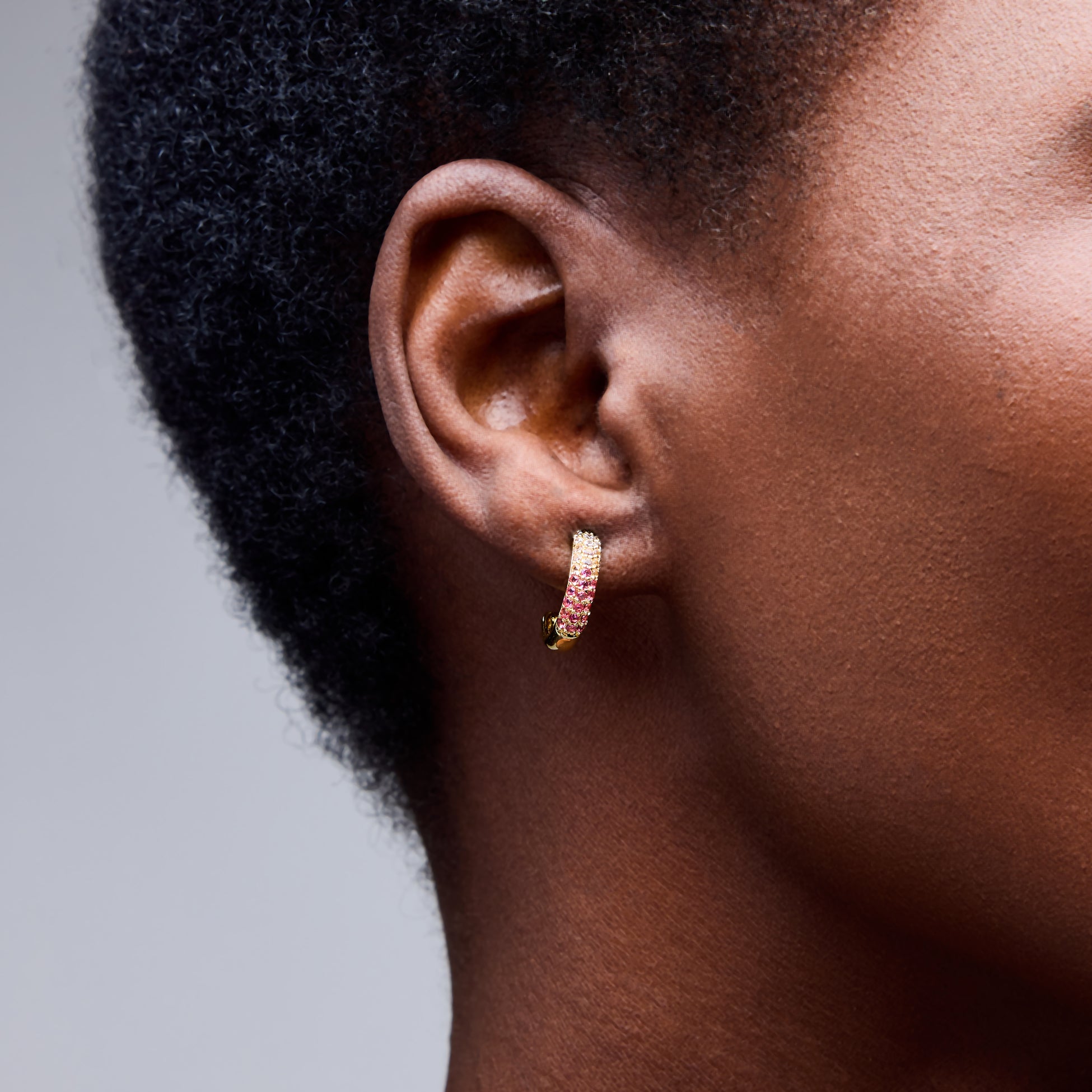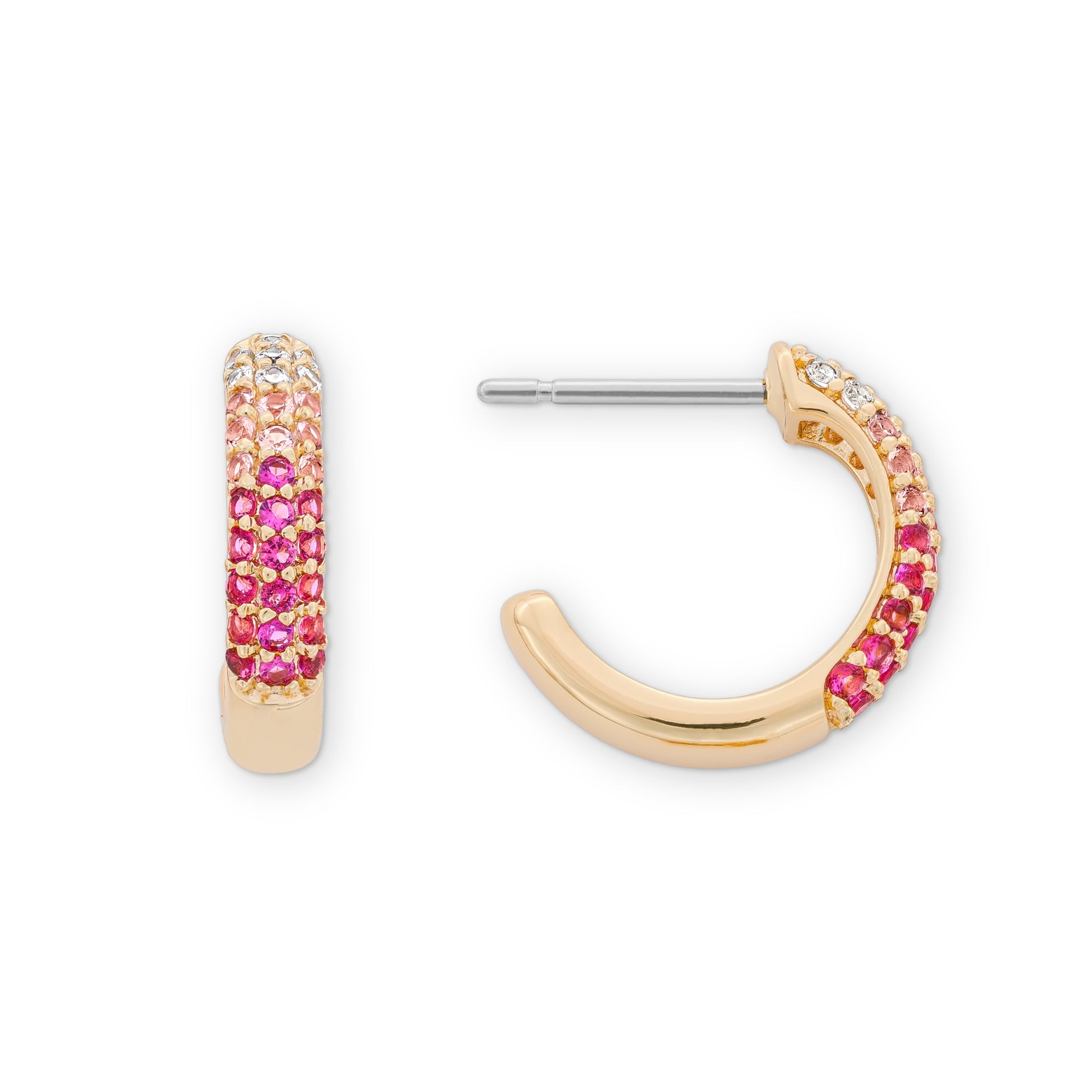 These are little hoops with big impact. These Chandler Pave Huggies bring a modern edge to classic hoops with graduated pink hues.