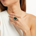 Estelle Cocktail Ring in Emerald & Clear CZ