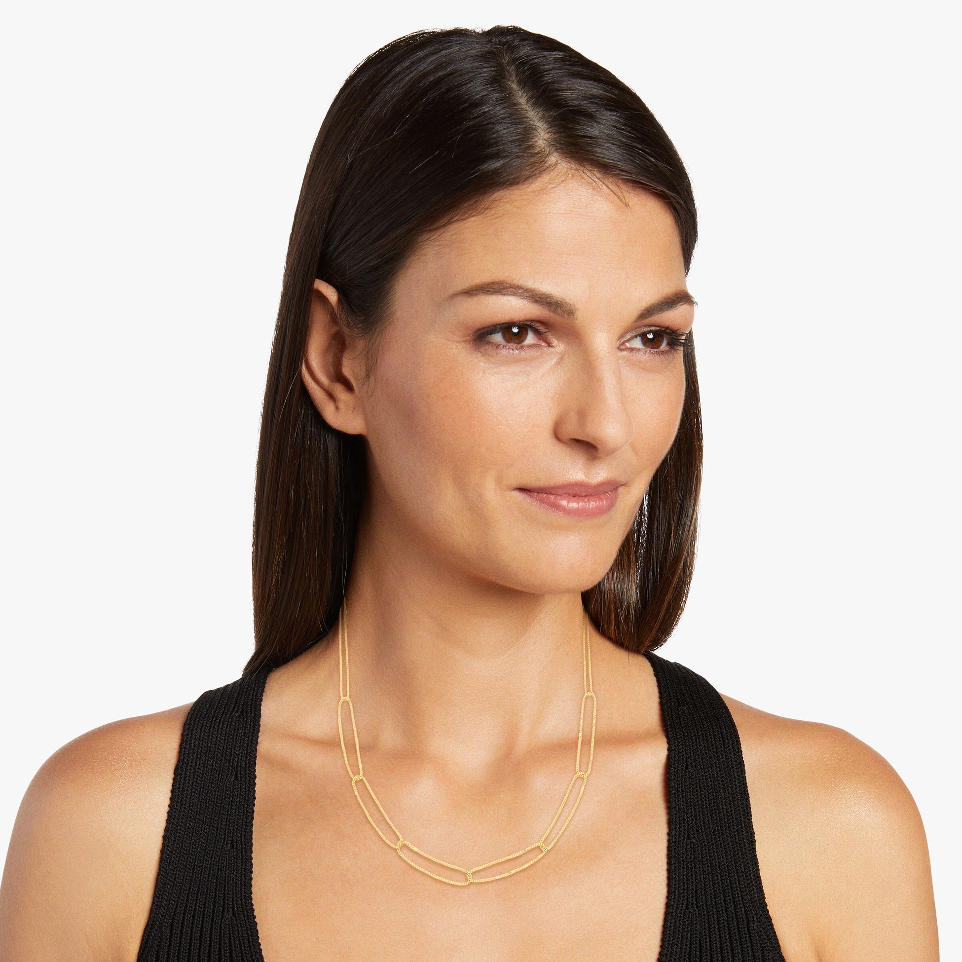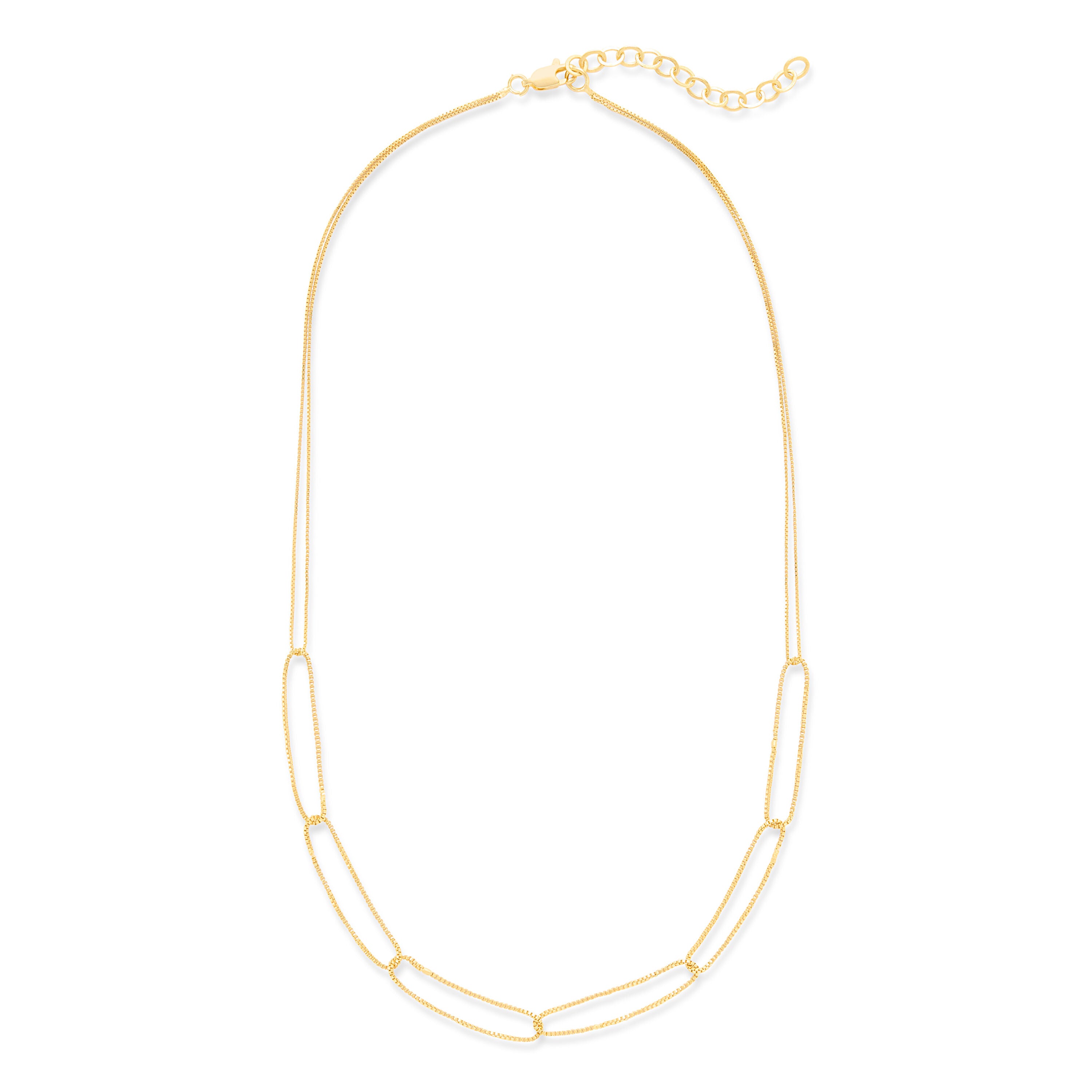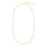 The Geary Delicate Linked Chain in Gold is a necklace made of 14k gold-plating, measuring 16" with a 3" extender. Experience the perfect blend of simplicity and elegance with this meticulously crafted linked chain necklace.