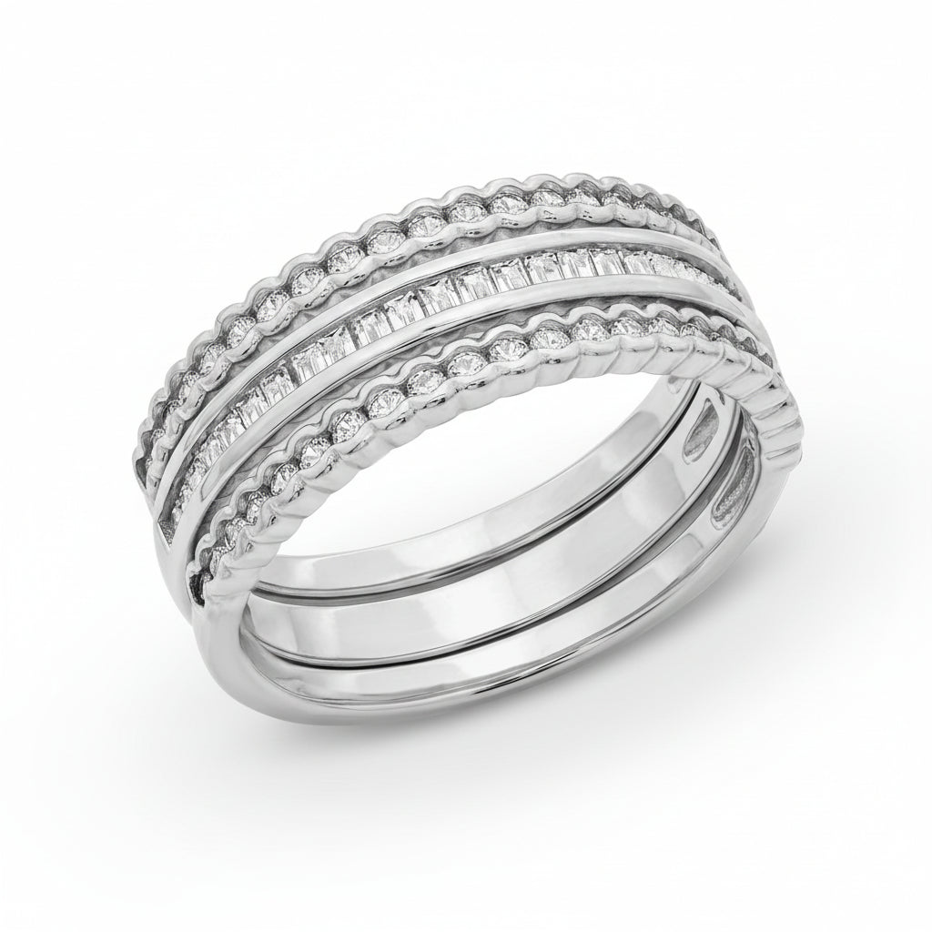 Layla Delicate Ring Stack in Silver & CZ