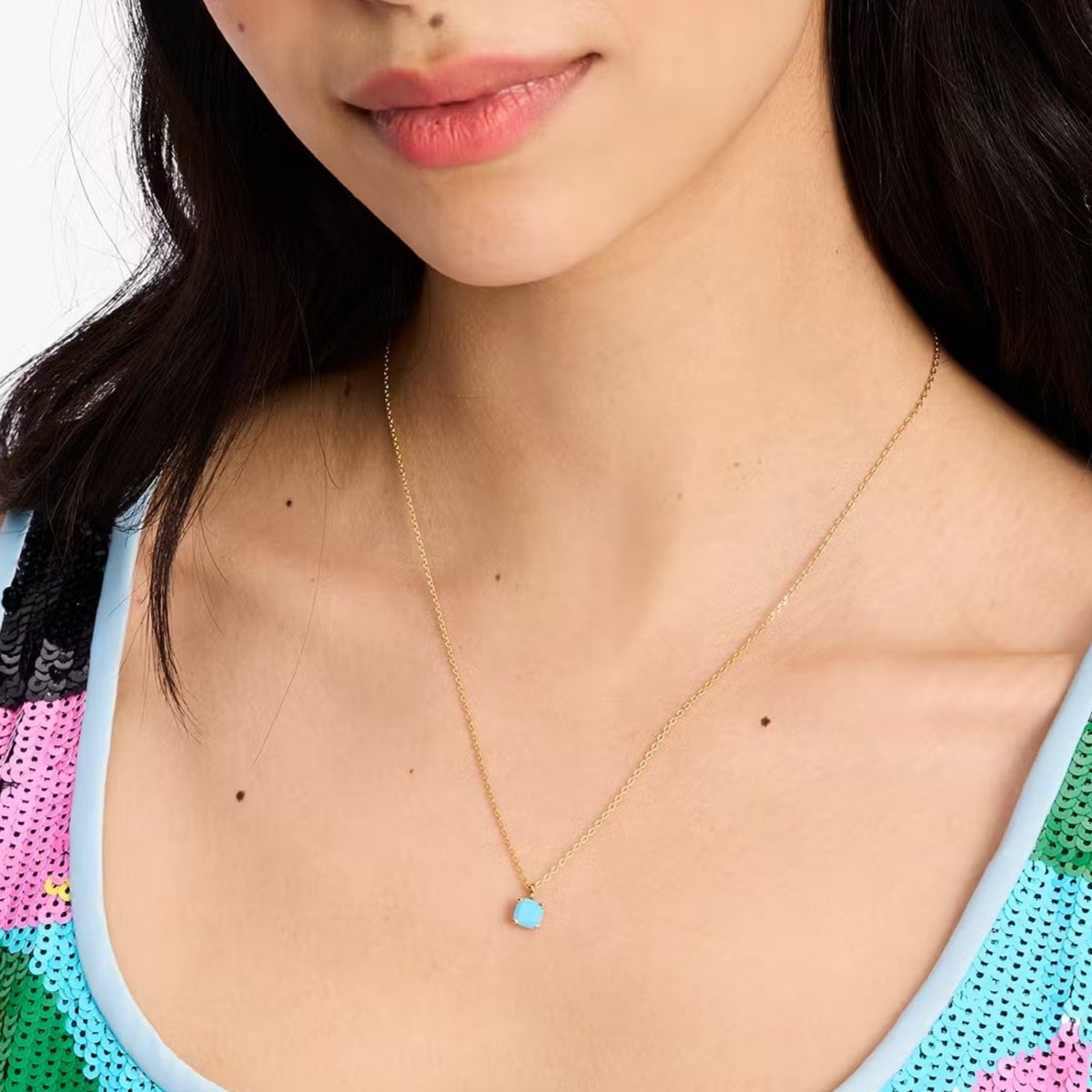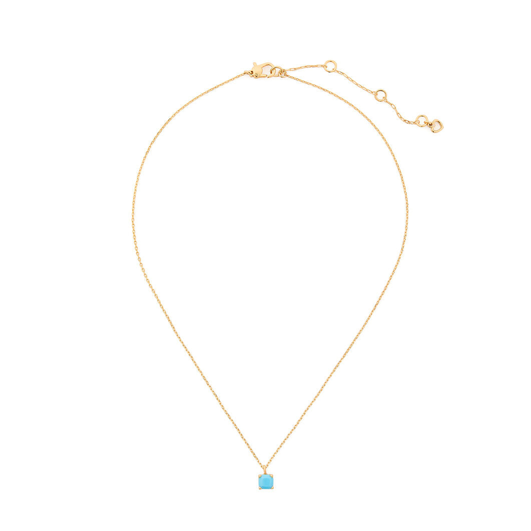 The Little Luxuries Light Blue Square Pendant in Gold by kate spade new york is an elevated everyday essential that adds a beautiful pop of color. This necklace is made of high polish, 18k gold plating with a bold crystal pendant, which measures 6mm.