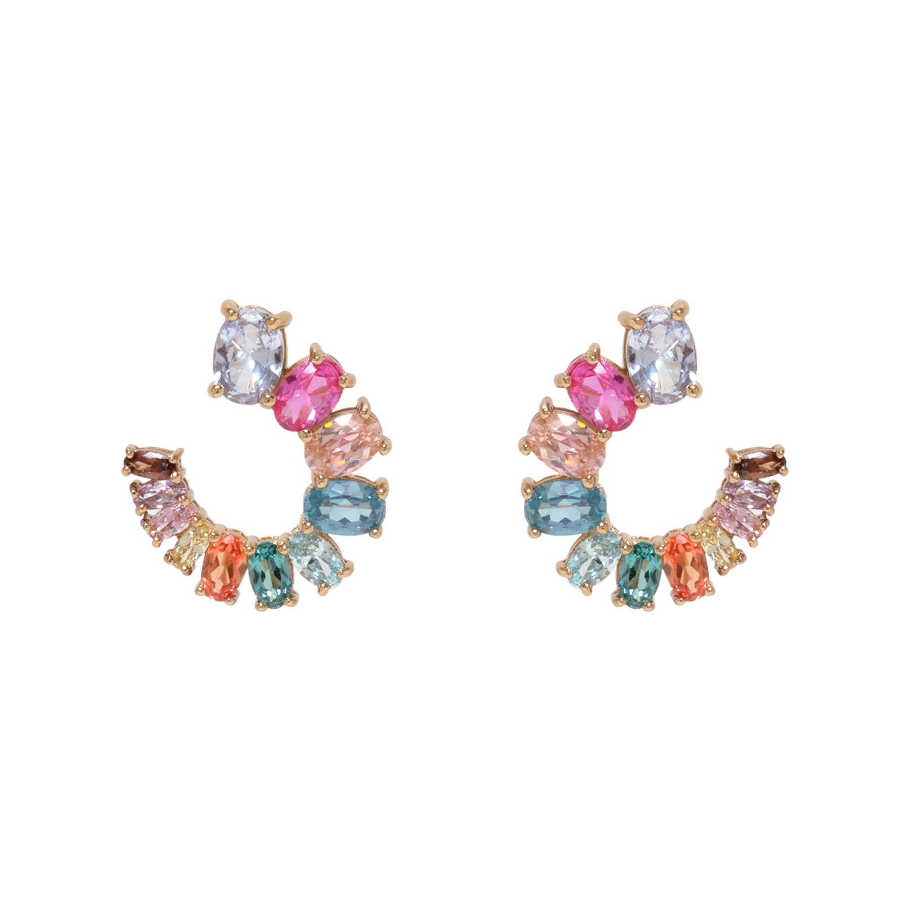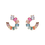 Multi-colored crystal hoops with high-shine, rainbow effervescence. An on trend style designed to be worn for both everyday and occasions.