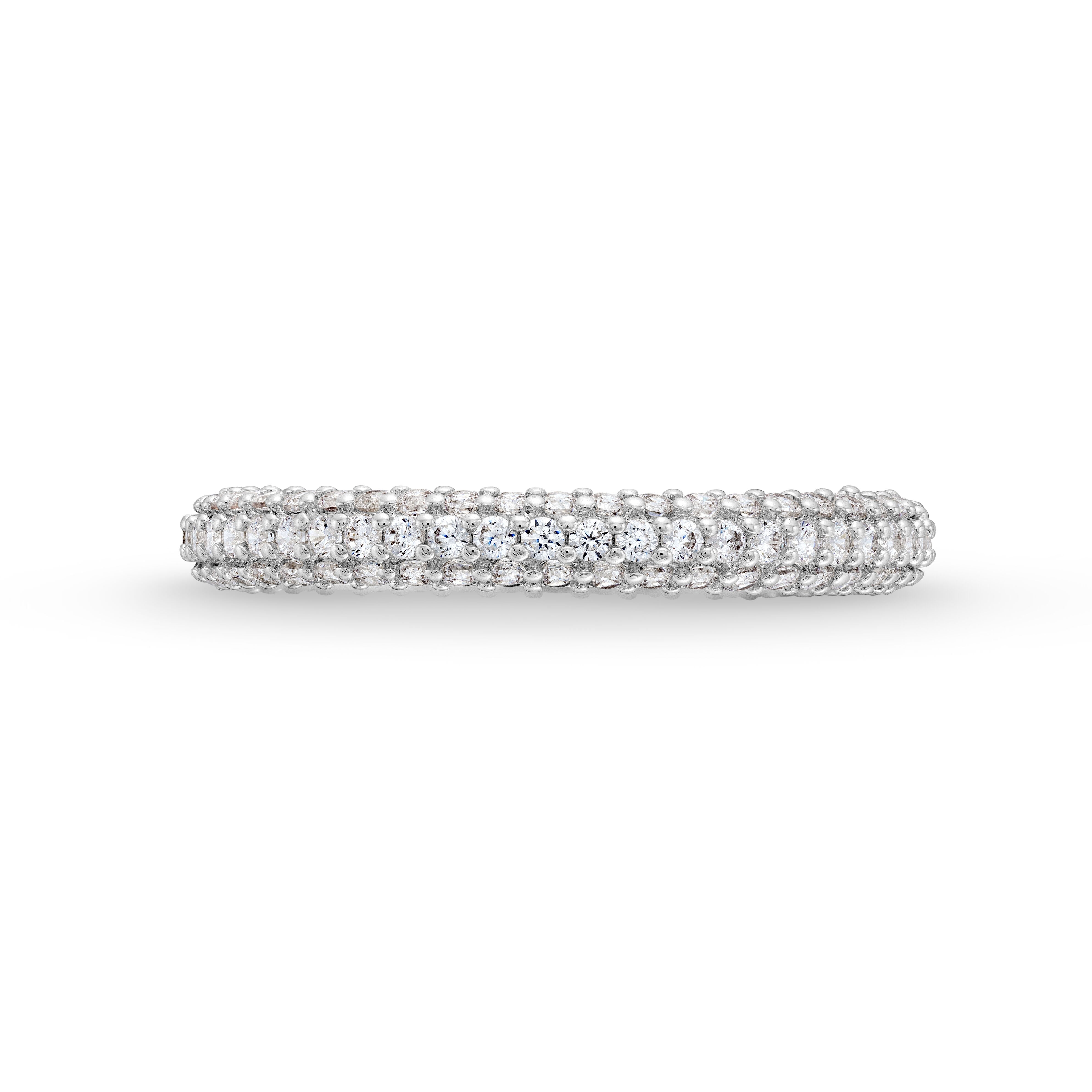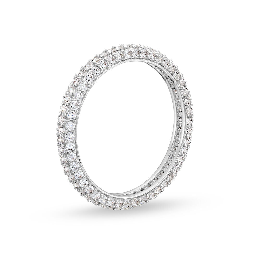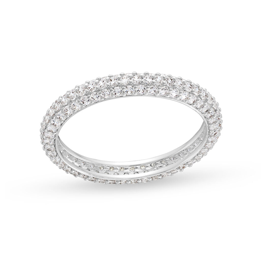 The Rocksbox Perry Ring is a high polish silver plated delicate ring. Featuring a circular band that is covered with small clear crystals.