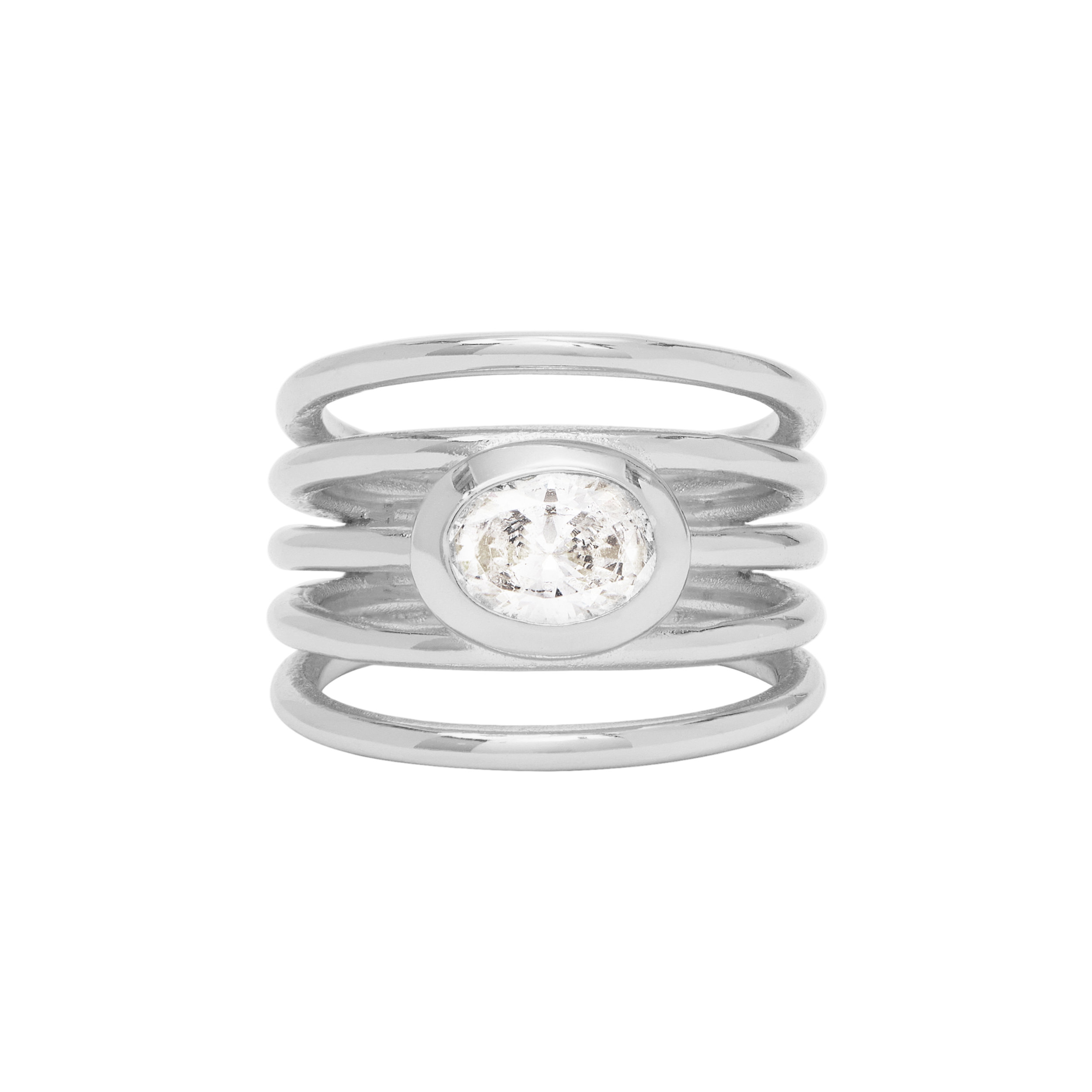 This stacked ring brings sleek lines and eye-catching sparkle together in one undeniably boss look. Bold on its own, striking in a ring party.