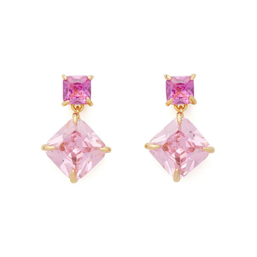 Showtime Drop Earrings in Gold & Pink