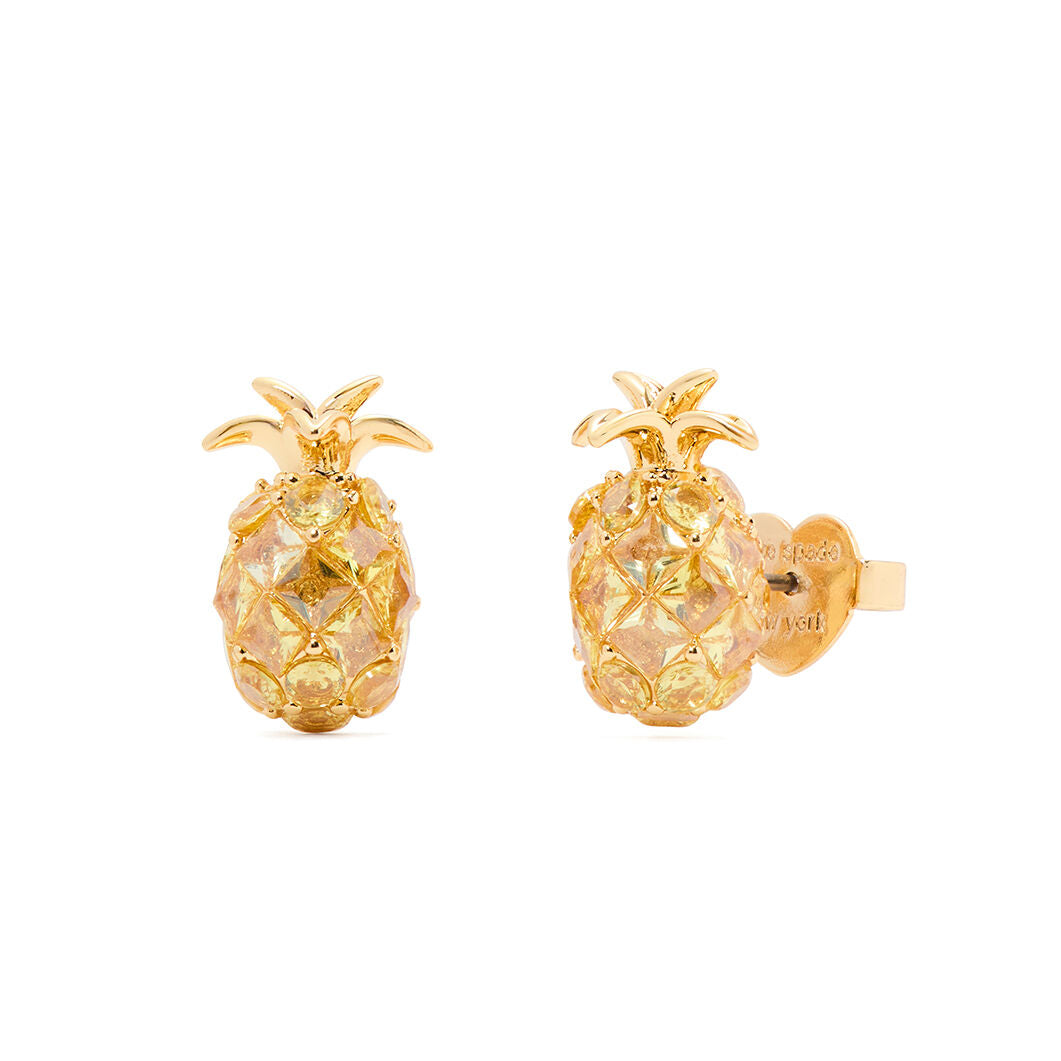 The Sweet Treasures Pineapple Studs in Gold by Kate Spade are the perfect touch of golden sparkle. These earrings are made of high polish, 18k gold-plating with cubic zirconia, and measure 0.59" by 0.39".