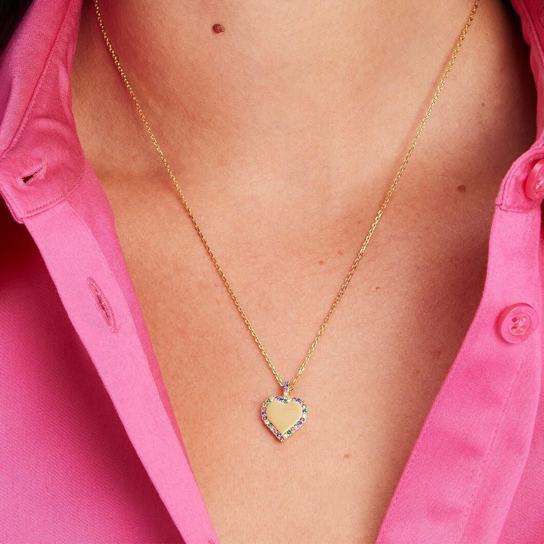 The heart wants what it wants: a pretty pendant with colorful crystal accents. The Take Heart Pendant in Gold & Multi CZ is plated in 18k gold and measures 18" + 3" extender.