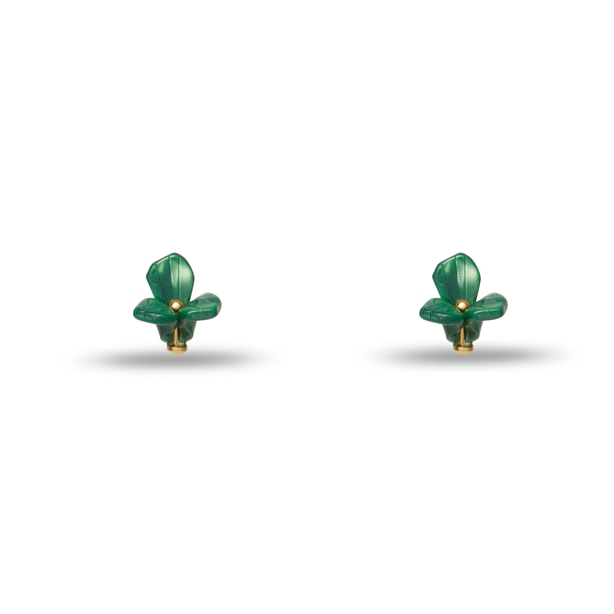 The Trillium Stud Earrings in Leaf Green by Lele Sadoughi are elevated basics featuring a fun and eye-catching leaf design. These unique earrings are made of high polish 14k gold plating.
