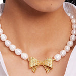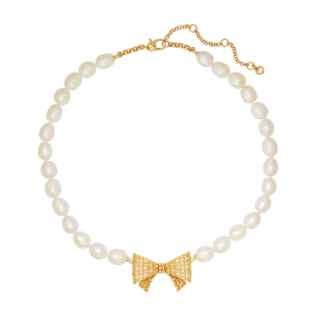Cute meets classic in the Wrapped in a Bow Pearl Necklace by Kate Spade. This Pendant Necklace features faux pearls and CZ stones and measures 17" with a 3" extender.